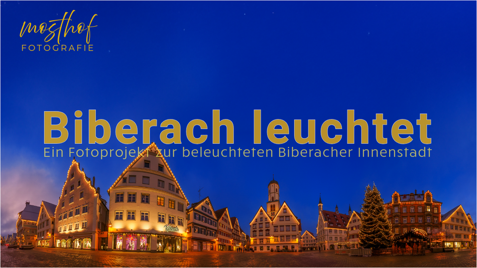 Sehr präsent und im Mittelpunkt nahezu aller Aufnahmen ist natürlich die Biberacher Stadtpfarrkirche, die in den Abendstunden und in der Nacht ebenfalls angeleuchtet wird.