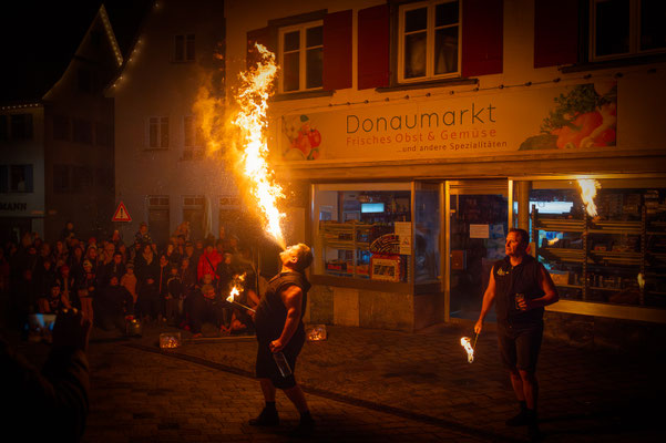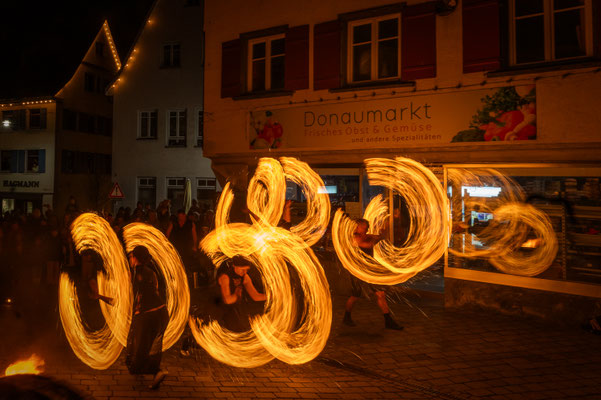 Die Feuershow war Teil des Weihnachtsmarktes auf dem "Weibermarkt" in Riedlingen.